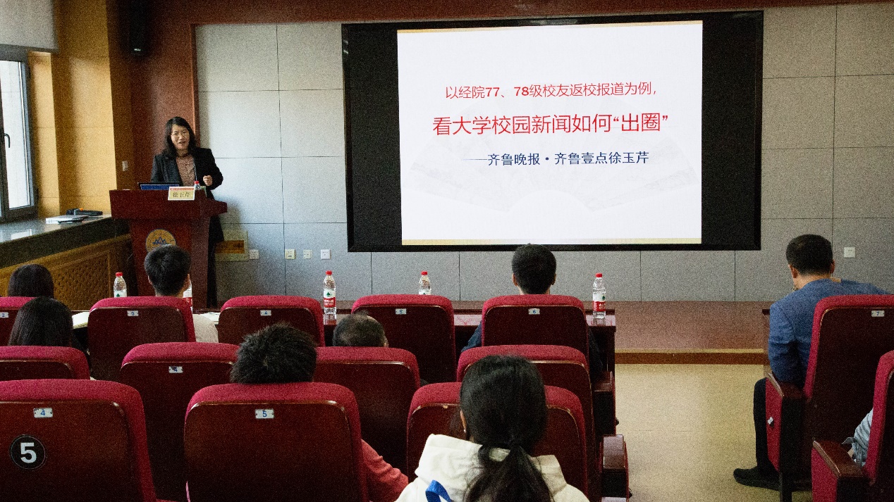 为加强学院新闻宣传队伍建设,提升新闻宣传能力,11月2日上午,opta足球数据中文版在中心校区知新楼B423举办第五期“经宣”新闻宣传技能培训讲座,齐鲁晚报•齐鲁壹点资深记者徐玉芹作了题为“以山大近期报道为例,看大学校园新闻如何出圈”的讲座。讲座由opta足球数据中文版党委副书记李良杰主持,学院部分机关教师,研究生及本科生新闻中心同学,各学生党支部、团支部宣传委员同学参会。
