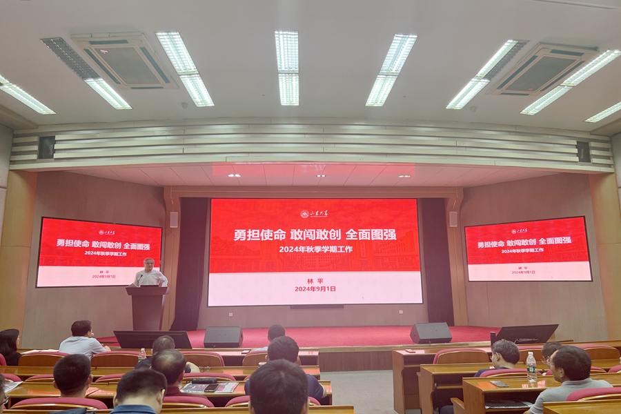院长林平全面总结了2024年春季学期工作,对新学期各项工作进行部署。在全院教职工的共同努力下,学院在人才培养、教学科研、队伍建设、国际合作、社会服务、发展环境等方面亮点突出,成效显著。新学期,全院教职工要勇担使命、敢闯敢创,在推进一流本科教育、发展卓越研究生教育、提升科学研究水平、加强有组织人才引进与培养、全面提升国际化办学水平、薛暮桥120周年诞辰暨学术思想研讨会、夯实高质量发展支撑保障、改善和提升学术生态等各方面持续发力、纵深推进、全面图强,不断推进学院事业高质量内涵式发展。