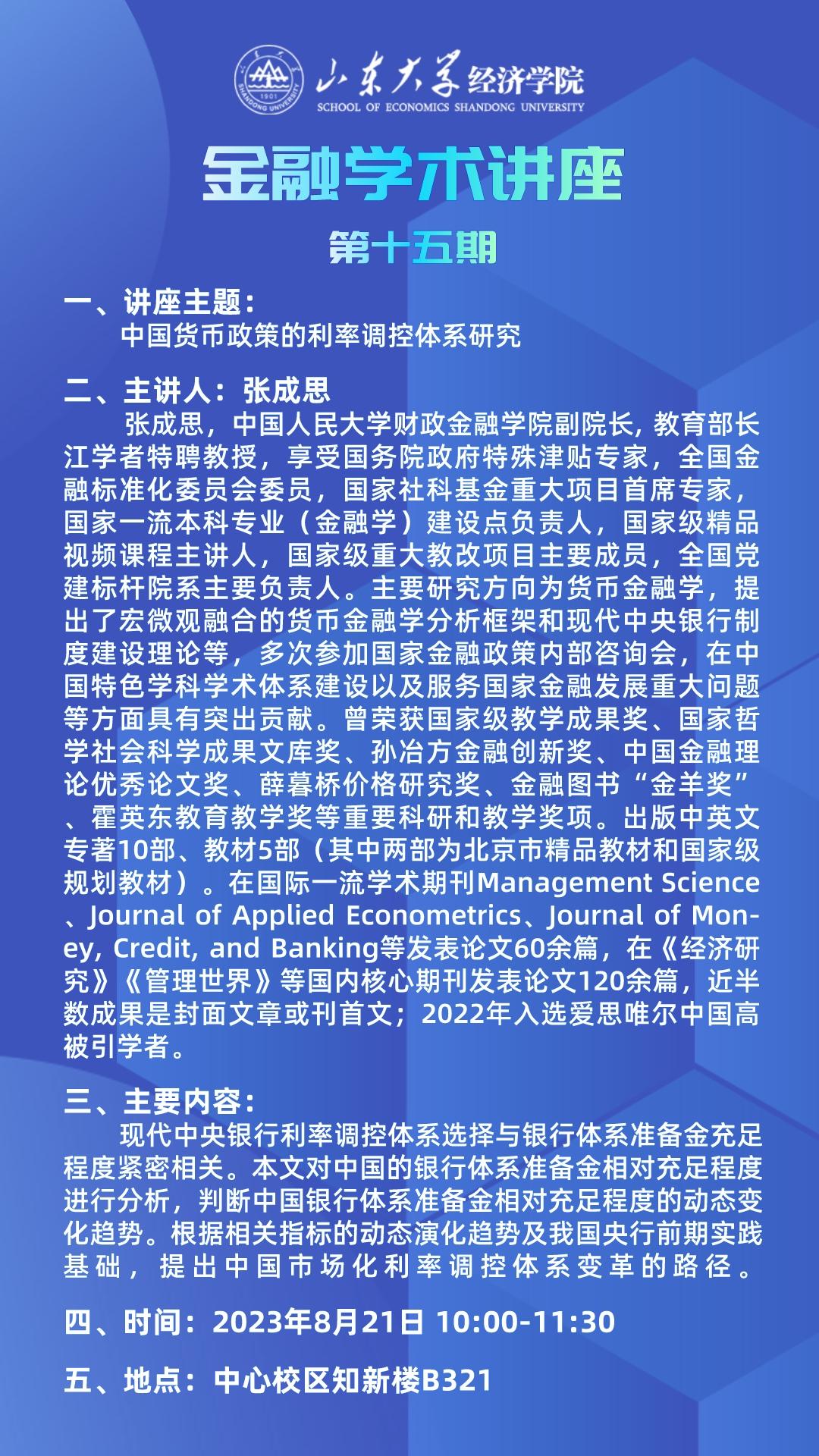 中国货币政策的利率调控体系研究(金融学术讲座第十五期)