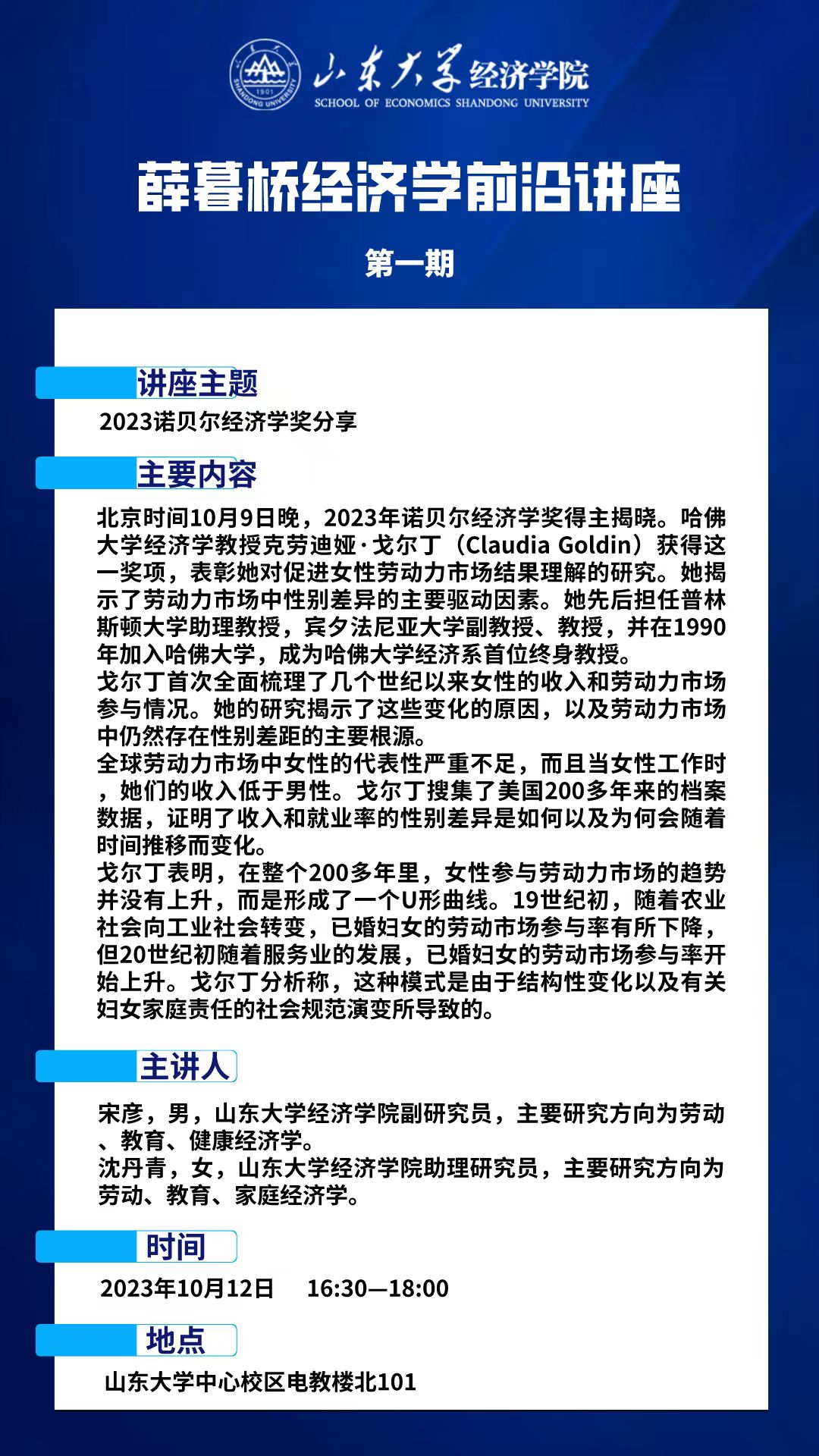 2023诺贝尔经济学奖分享(薛暮桥经济学前沿讲座 第一期)