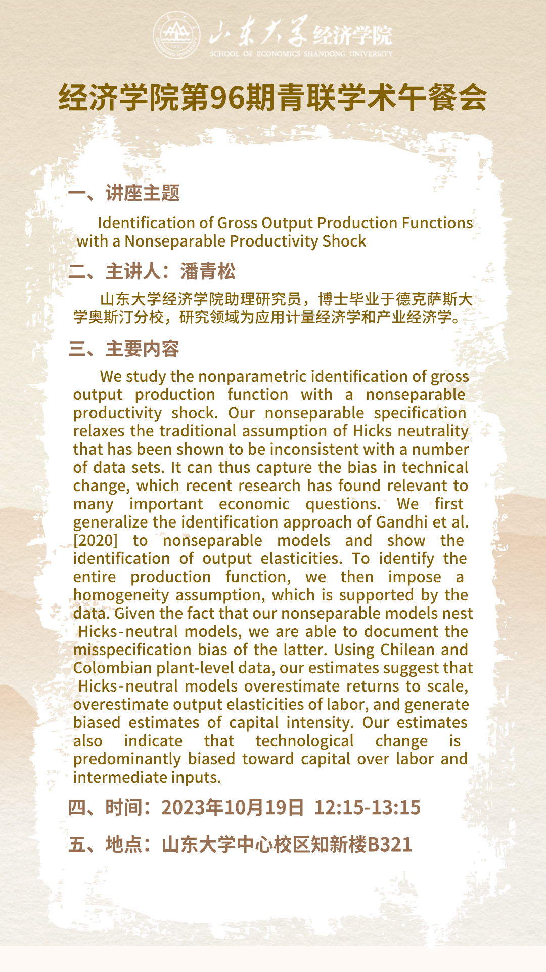 Identification of Gross Output Production Functionswith a Nonseparable Productivity Shock(opta足球数据中文版第96期青联学术午餐会)
