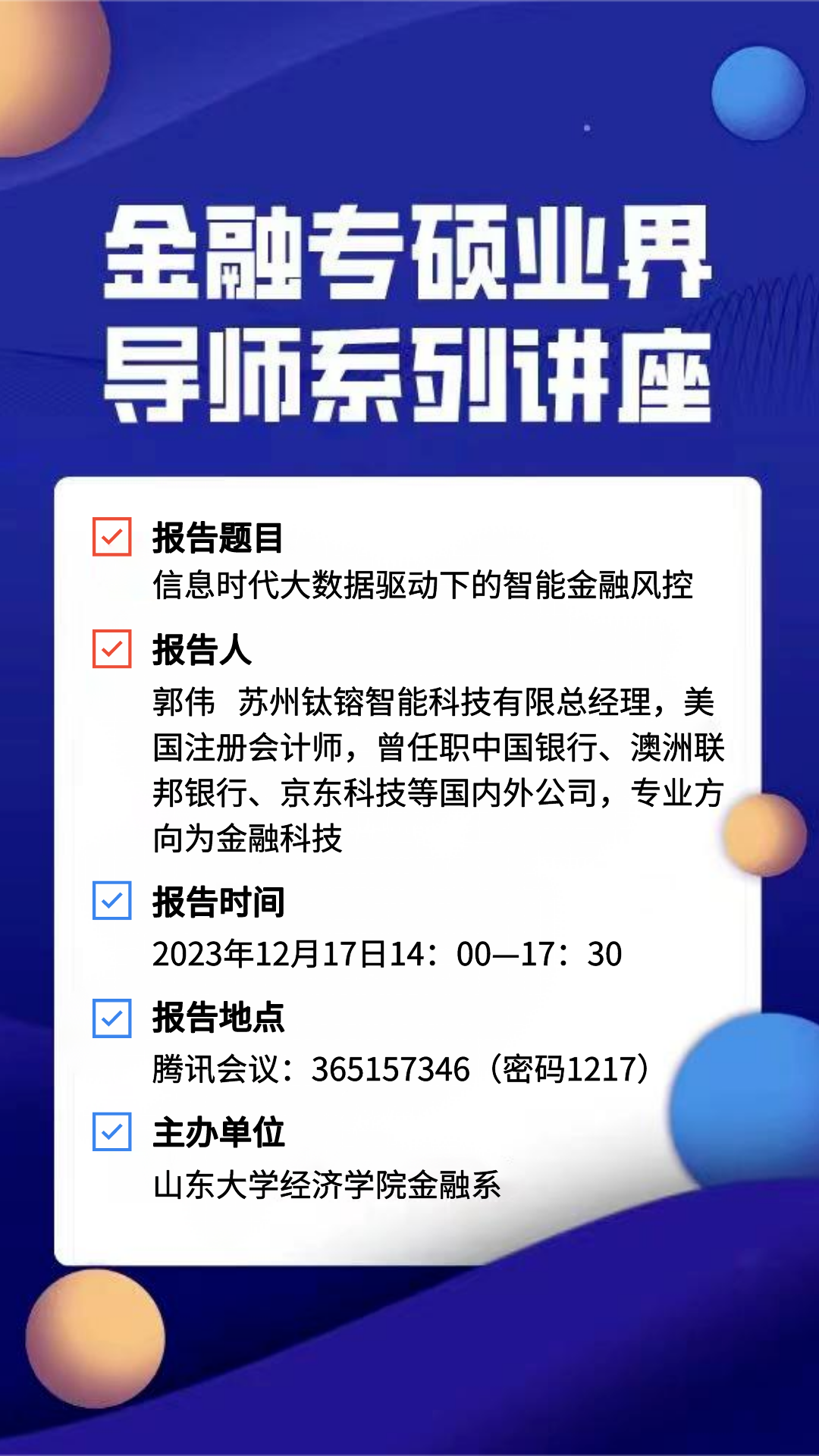 信息时代大数据驱动下的智能金融风控(金融专硕业界导师系列讲座)
