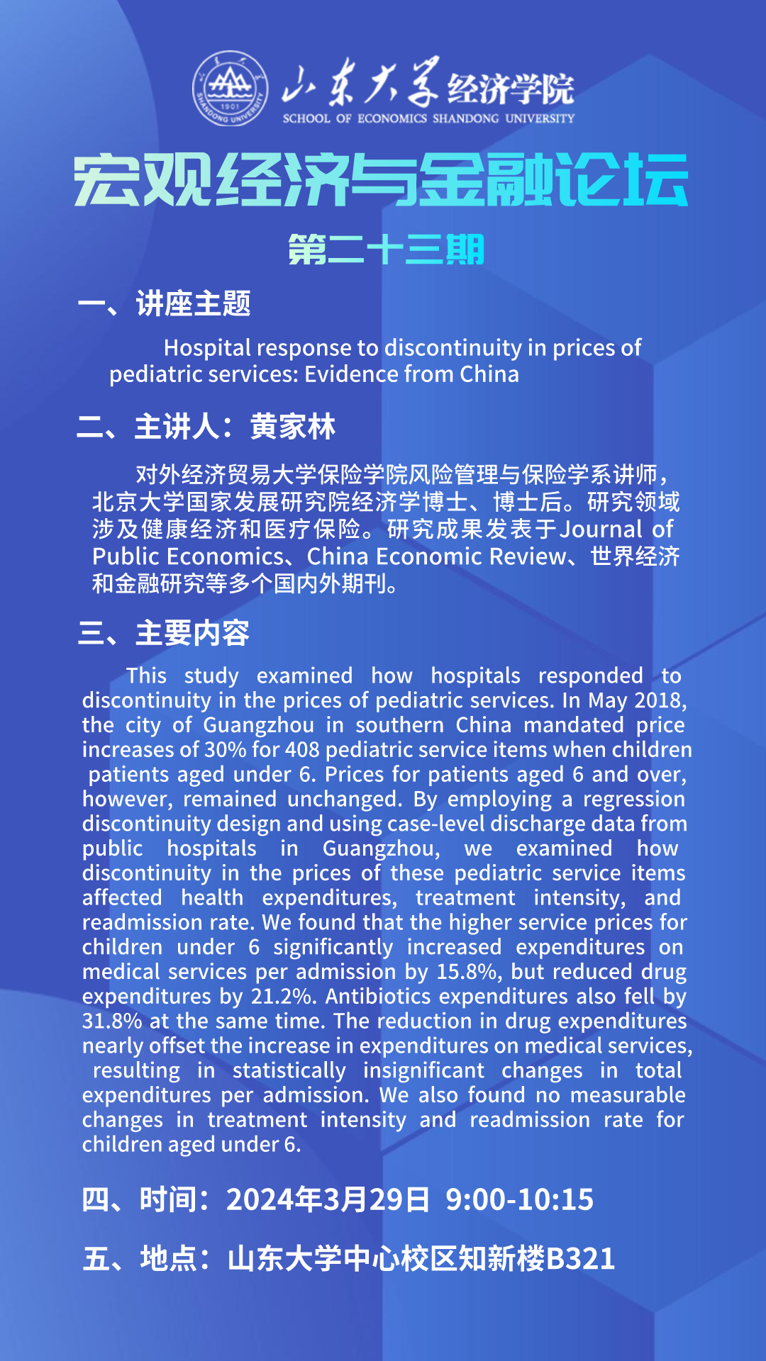 Hospital response to discontinuity in prices of pediatric services:Evidence from China(宏观经济与金融论坛第二十三期)
