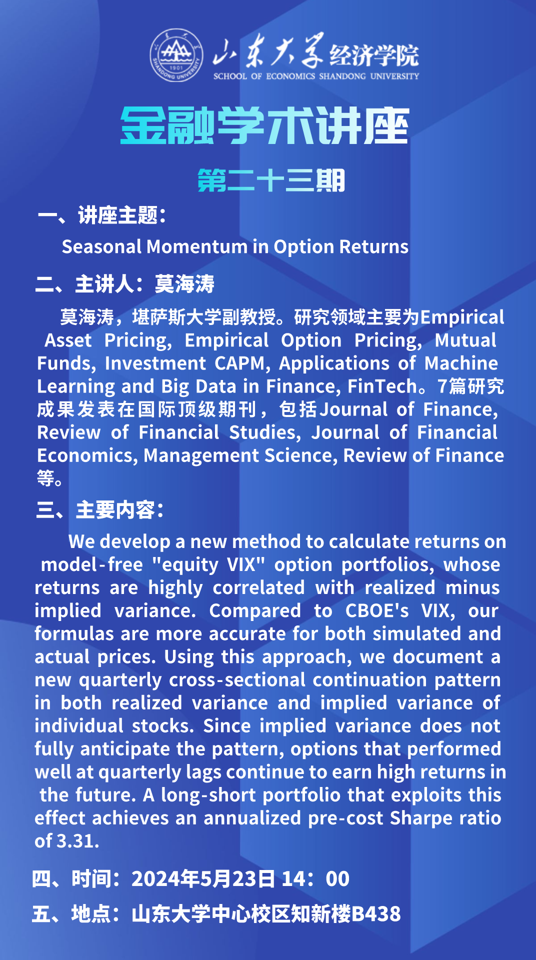 Seasonal Momentumin Option Returns(金融学术讲座第二十三期)