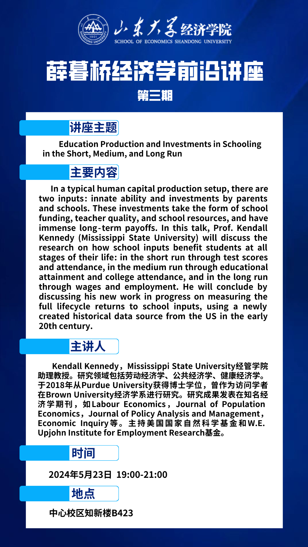 Education Production and Investments in Schoolingin the Short, Medium, and Long Run(薛暮桥经济学前沿讲座第三期)
