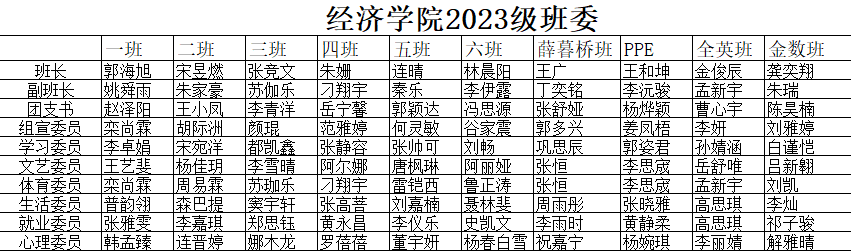 根据个人报名、述职面试,结合个人情况和近期表现,现将2023级班委名单公示如下,以下同学试用期一个月,希望班委同学不负众望,继续努力,更好的为班级同学服务!